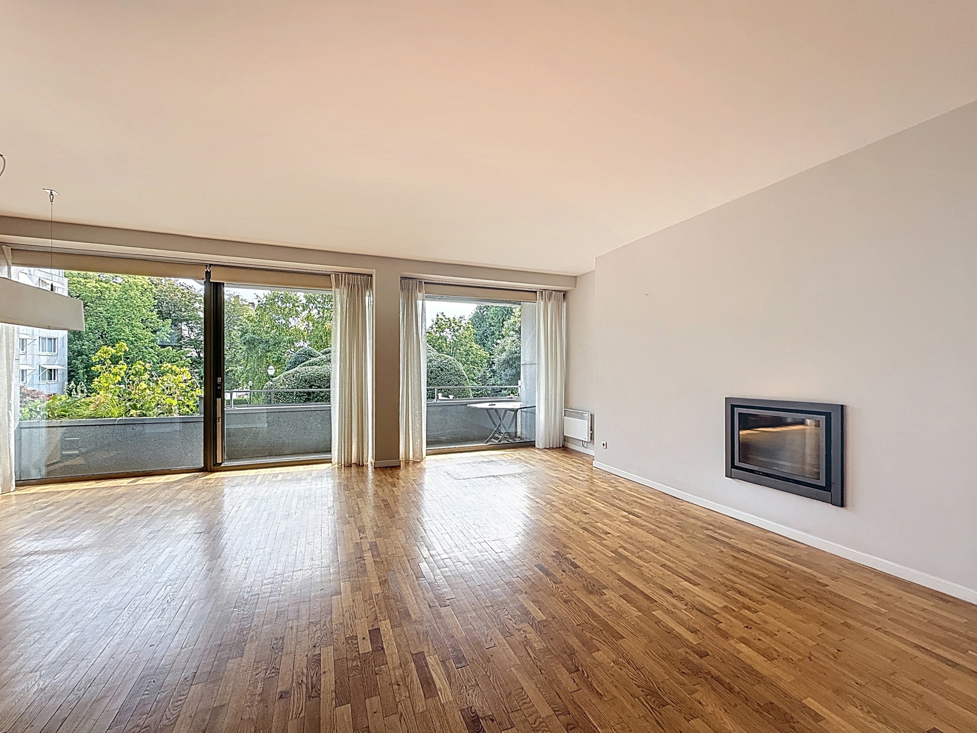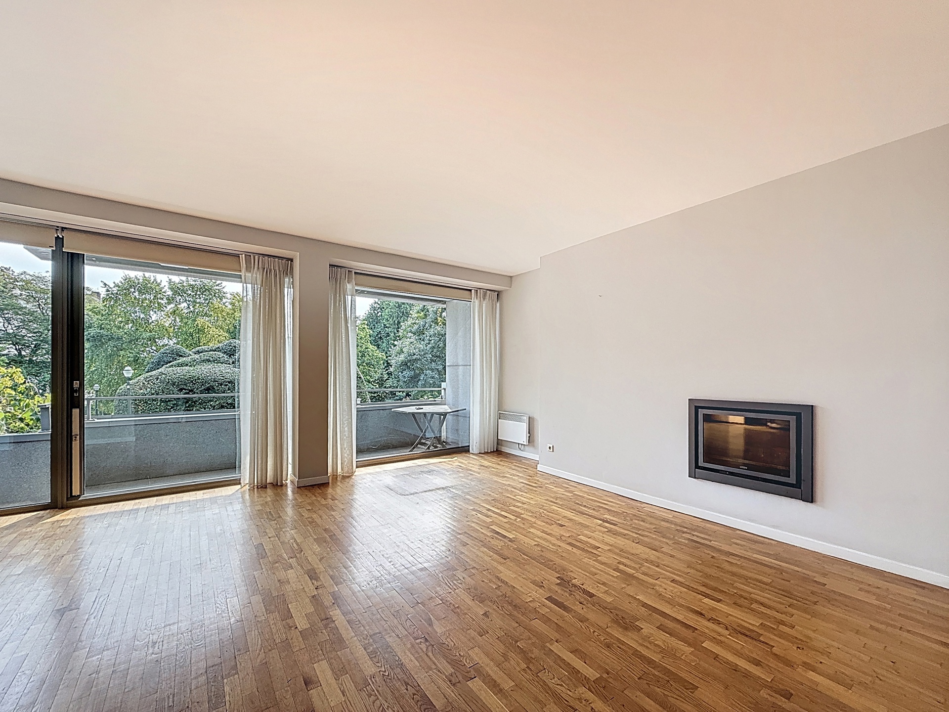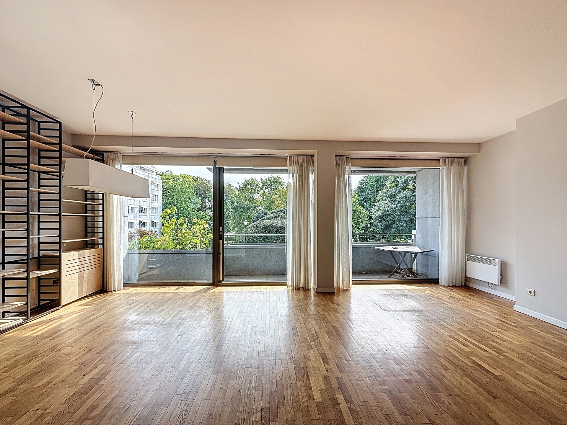 Ixelles, face aux jardins du Roi, et proche du Chatelain/LOUISE , dans un immeuble construit par l'architecte Corbiau, magnifique appartement, situé au 1er étage sur 9 étage. L'appartement comprend agréable living avec feu ouvert et parquet, une cuisine super équipée, 2 chambres avec dressing, 2 salles d'eau, WC. Buanderie équipée d'un lave linge et séchoir. Terrasses exposées. Vidéophone. Alarme. Cave. Parking intérieur