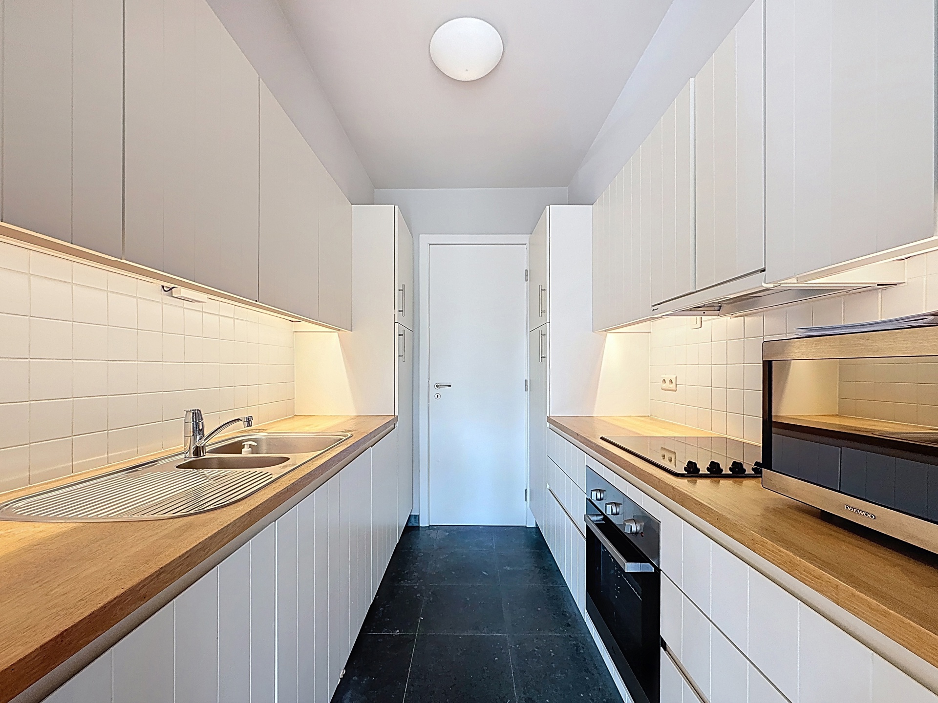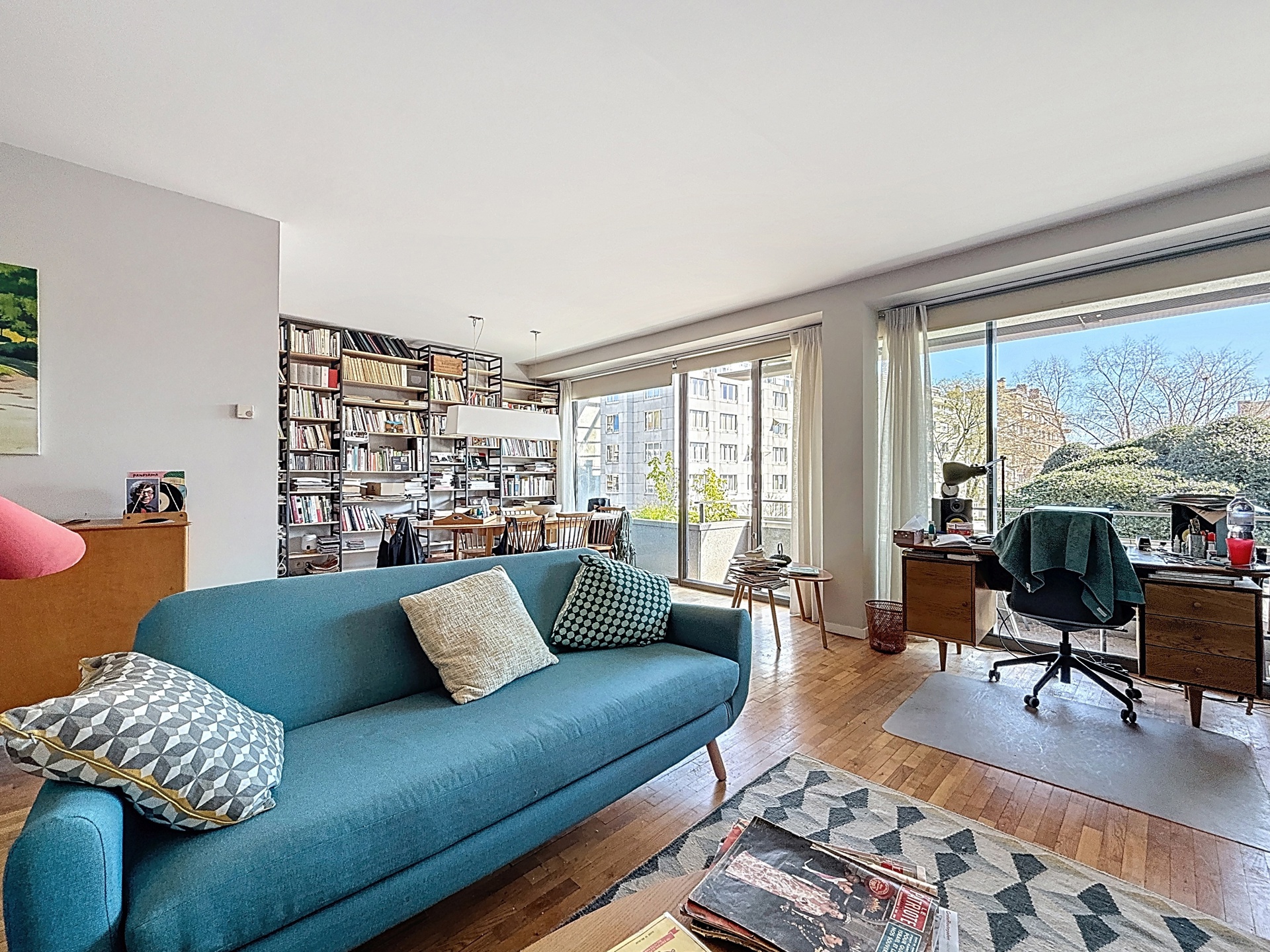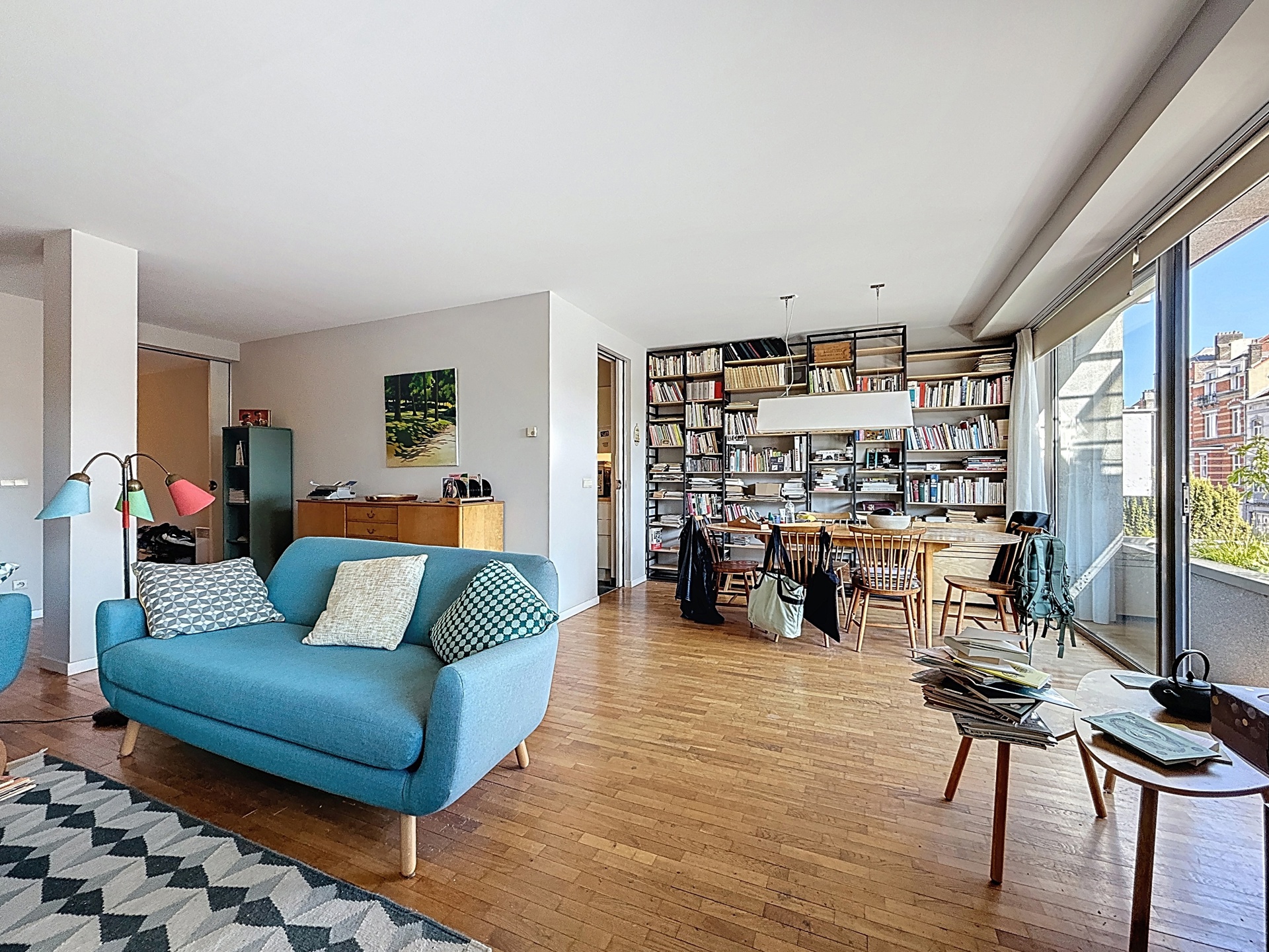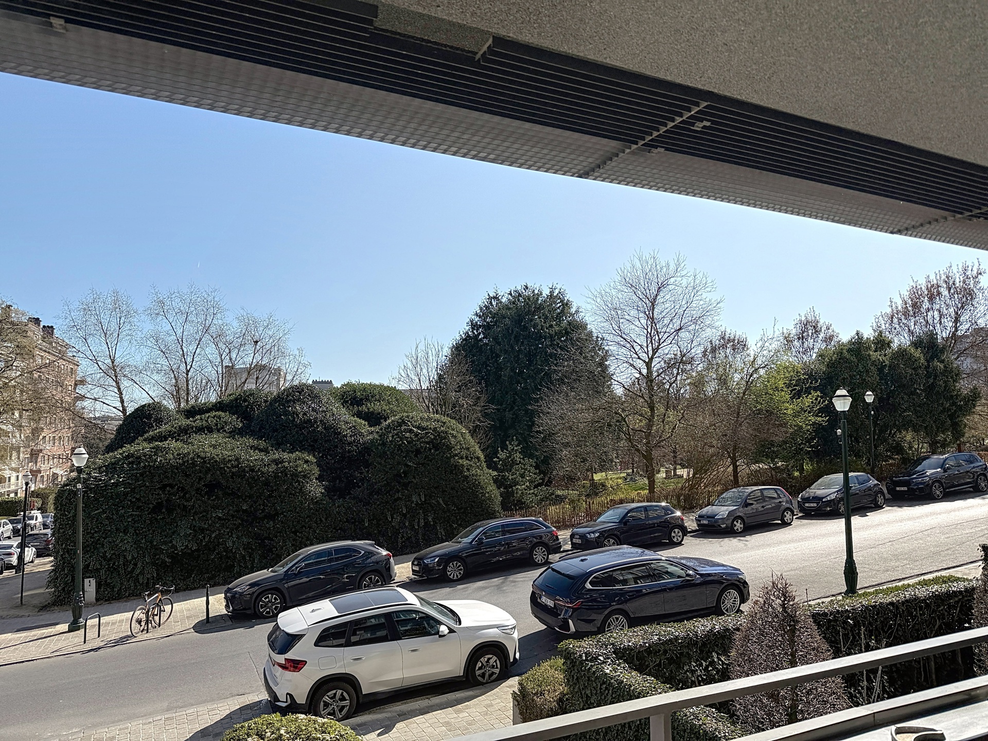 Ixelles, face aux jardins du Roi, et proche du Chatelain/LOUISE , dans un immeuble construit par l'architecte Corbiau, magnifique appartement, situé au 1er étage sur 9 étage. L'appartement comprend agréable living avec feu ouvert et parquet, une cuisine super équipée, 2 chambres avec dressing, 2 salles d'eau, WC. Buanderie équipée d'un lave linge et séchoir. Terrasses exposées. Vidéophone. Alarme. Cave. Parking intérieur
